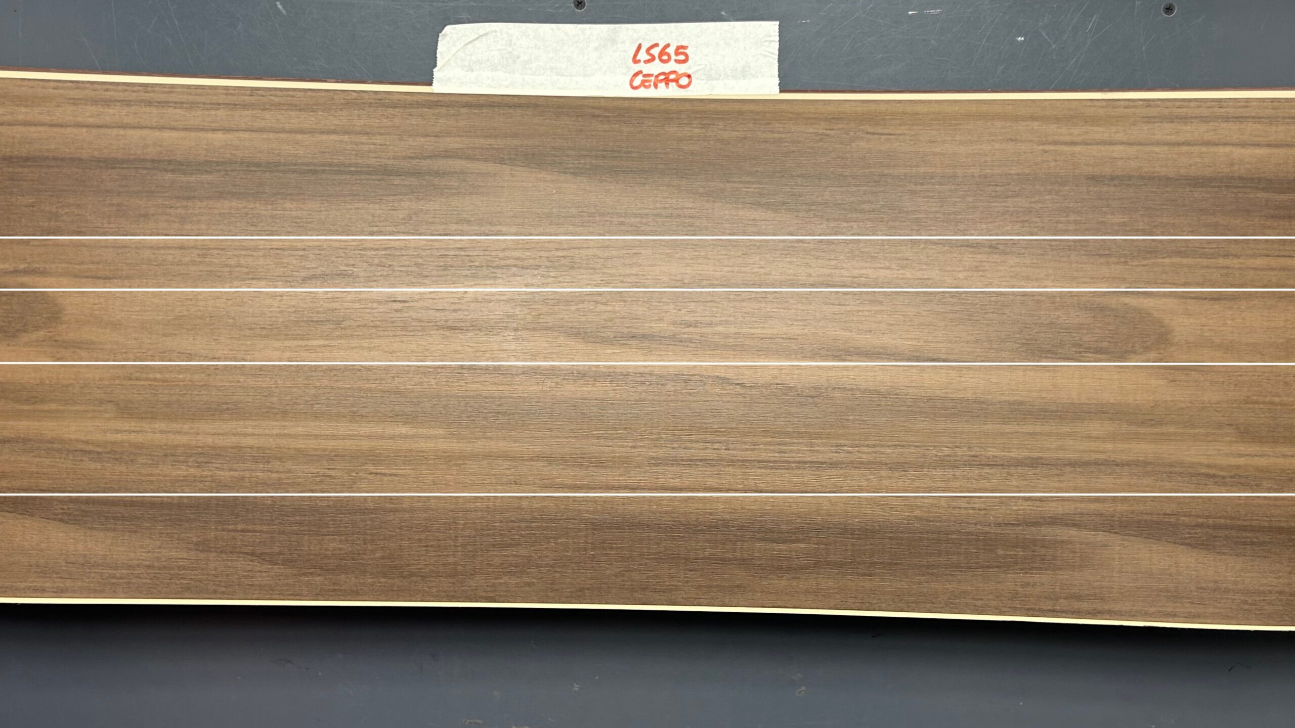 Een goed voorbeeld is het decor LS65 Ceppo. Op de grote rol zijn duidelijke kleurnuances zichtbaar, die bijdragen aan de natuurlijke uitstraling van het materiaal. Deze variaties kunnen echter ook leiden tot zichtbare verschillen in het uiteindelijke ABS kantenband.