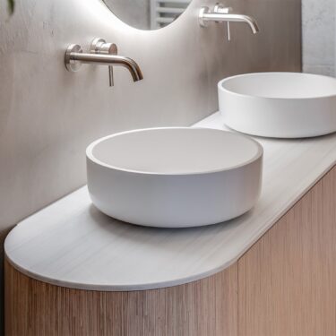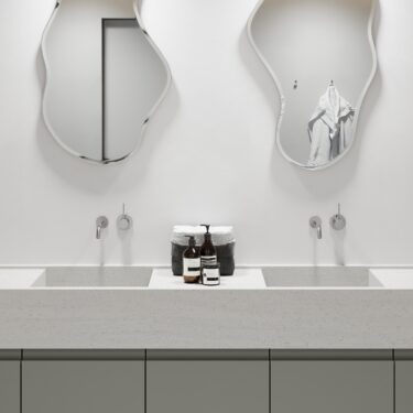 De collectie onderscheidt zich met een aantal betoverende en spraakmakende dessins, maar ook decors met levendige aders, subtiele glitters en eigentijdse unikleuren. En oppervlakken met fijne of grovere deeltjes die de beleving geven van glas, graniet of zandsteen korrels. Durasein® solid surface bestaat voor 2/3 uit natuurlijke mineralen, en voor 1/3 uit hoogwaardige acrylharsen en pigmenten. Het resultaat is een ijzersterk, naadloos te vormen, onderhoudsvriendelijk en duurzaam oppervlakte materiaal. Hier vind je meer technische informatie.