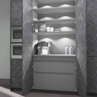 Door aandacht te besteden aan zowel de buiten- als de binnenkant van een kast wordt de kracht van maatwerk meubelen onderstreept. Als ontwerper wil je de gekozen uitstraling natuurlijk doorvoeren in het kastinterieur. Je kunt kiezen voor een esthetische structuur van Cleaf, maar als het budget dat niet toelaat is er de collectie DECObasic met eigentijdse unikleuren.