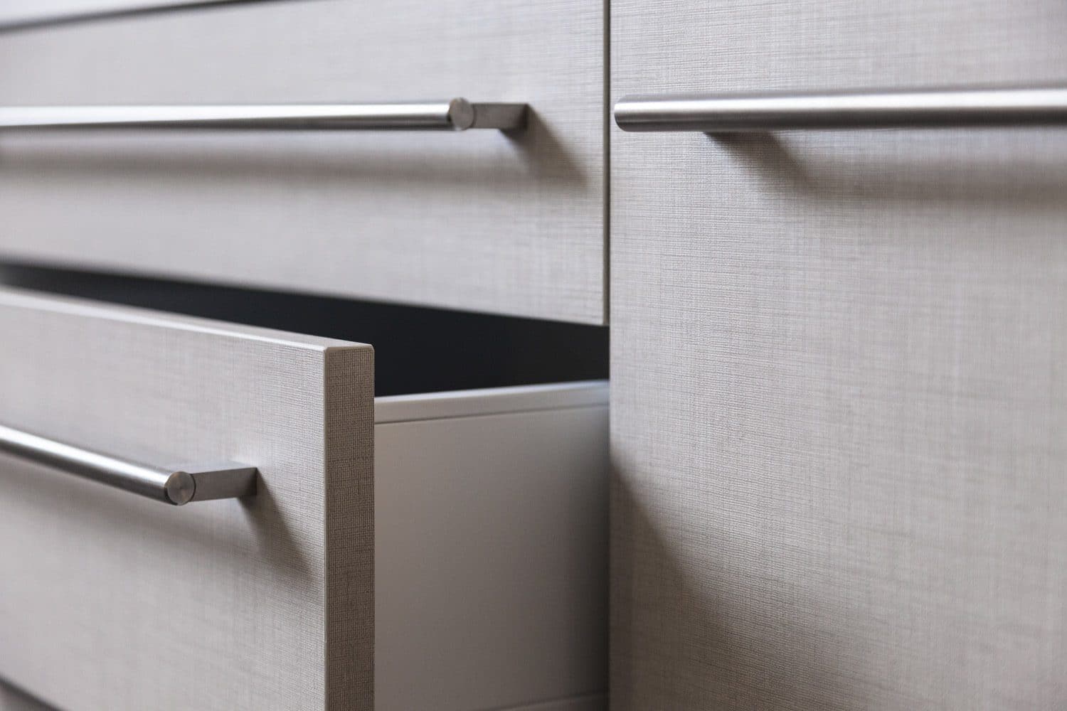 Detailfoto van maatwerk kast in linnenstructuur FA44 Penelope