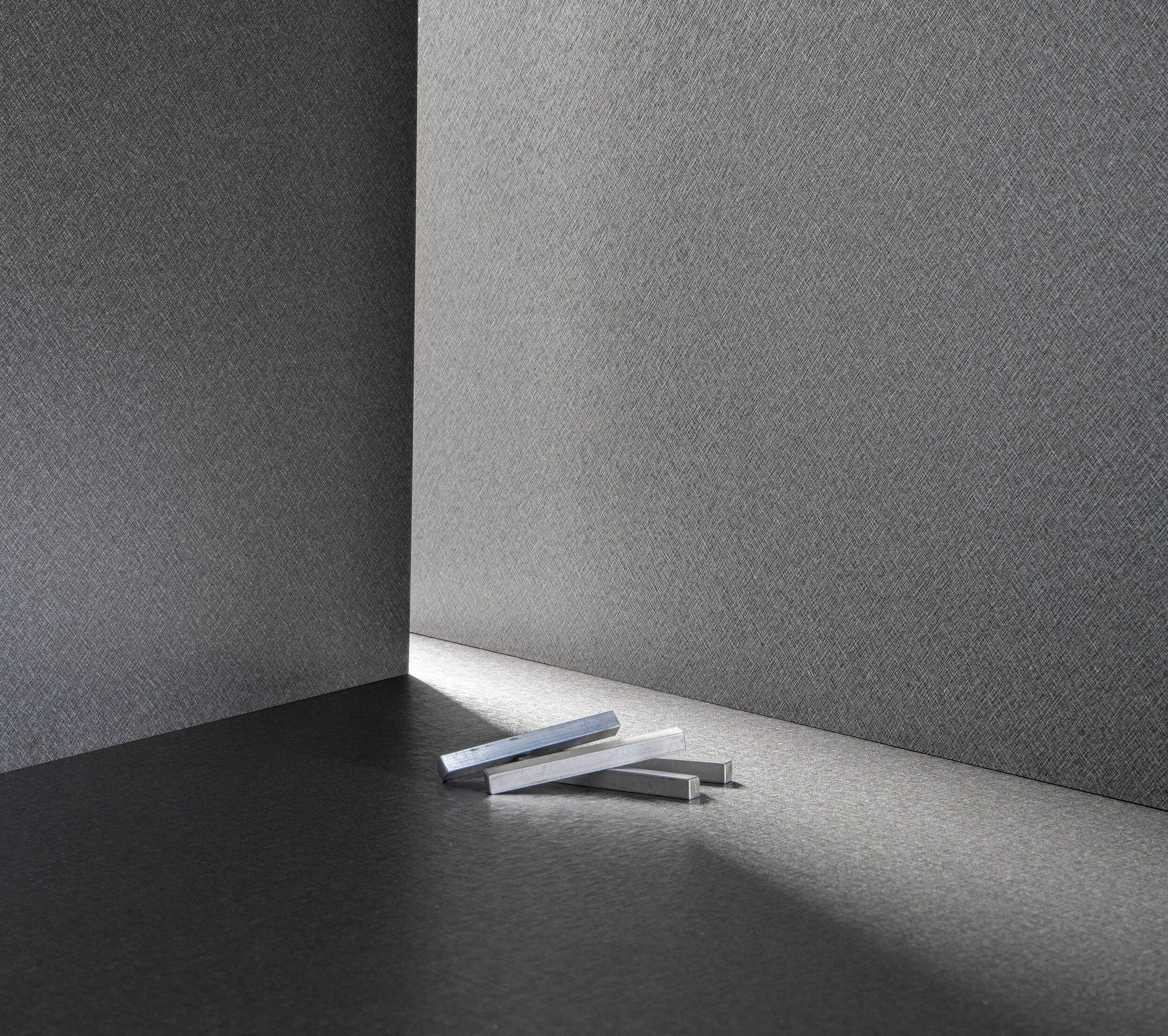 De subtiel ogende en voelbare structuur van Idea doet denken aan die van geborsteld aluminium. Daarmee haakt Idea in op de actualiteit van metalen optieken in interieurbouw en meubelontwerp. Deze FB30 variant heeft een grijze kleur.