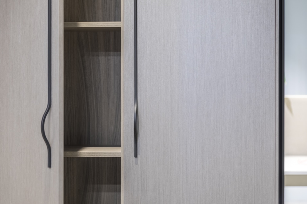 Leverbaar in HPL met een gelijk decor aan het decorspaanplaat, maar een afwijkende structuur en glansgraad