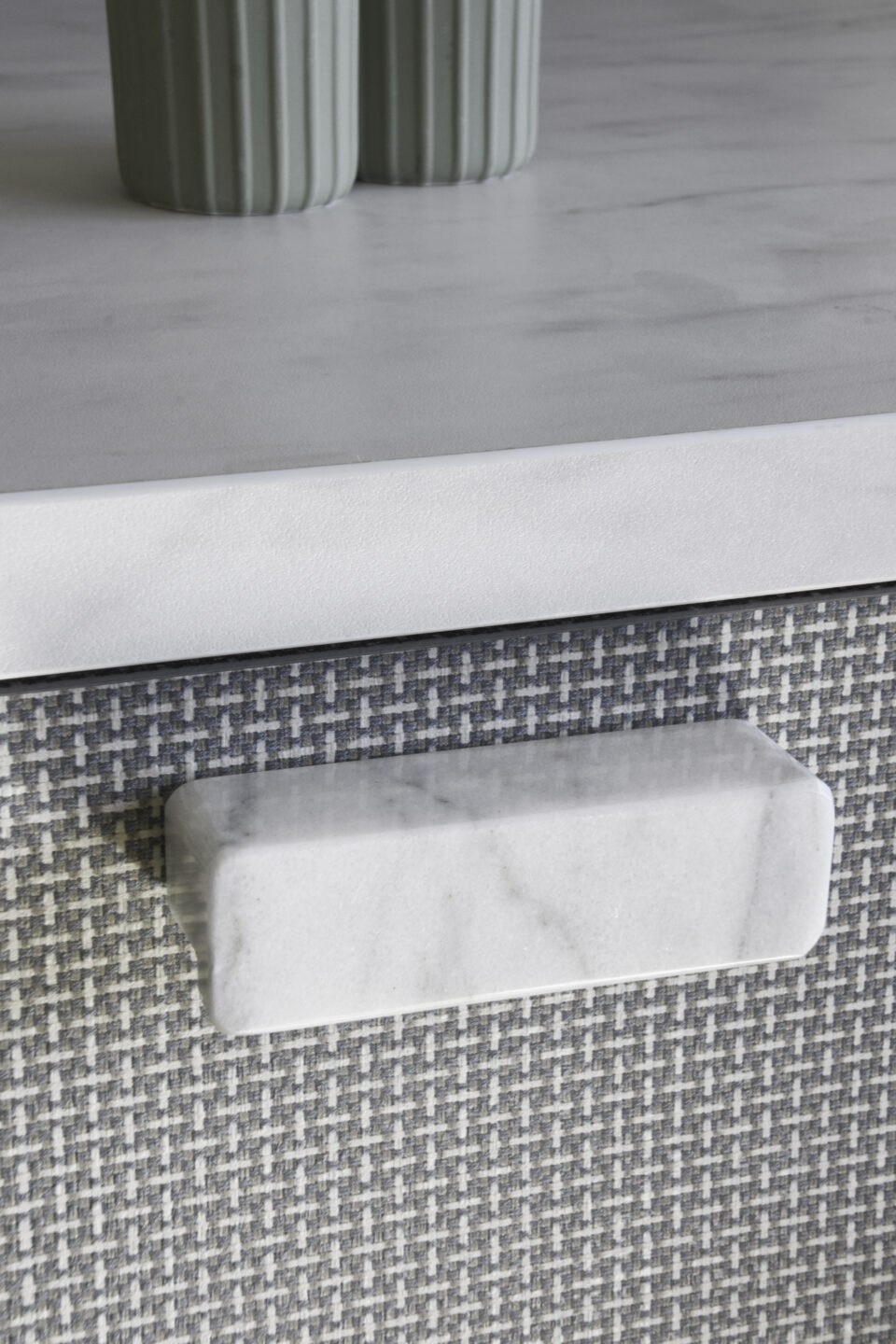 Kenmerkend voor de collectie Nadir is de fijne, geometrische blokjesstructuur met een subtiel mat-en-glans-effect. In kleur FD05 wordt deze gecombineerd met een decor dat doet denken aan verfijnd geweven tweedstof in een gemêleerd kleurenpalet van blauwgrijs, beige en gebroken wit. Met dit decor geef je een modisch accent aan ieder interieur.
