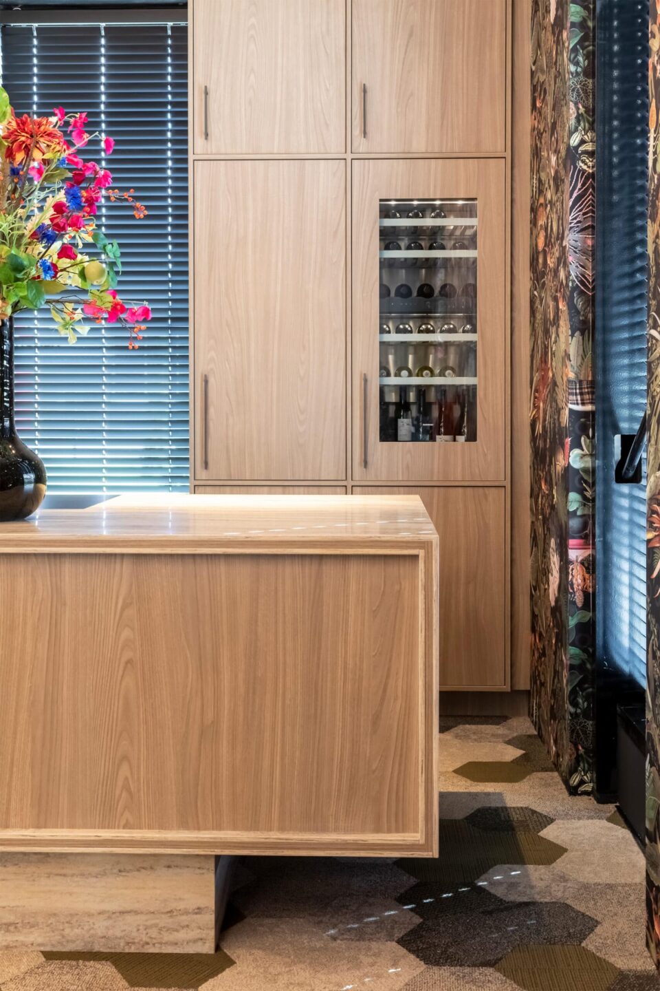 Kleur S174 geeft die naturelkleurige beleving met subtiele, zacht bruine nerven. De tekening van Corteccia komt het mooiste tot zijn recht in de toepassing als hoge kastdeuren.