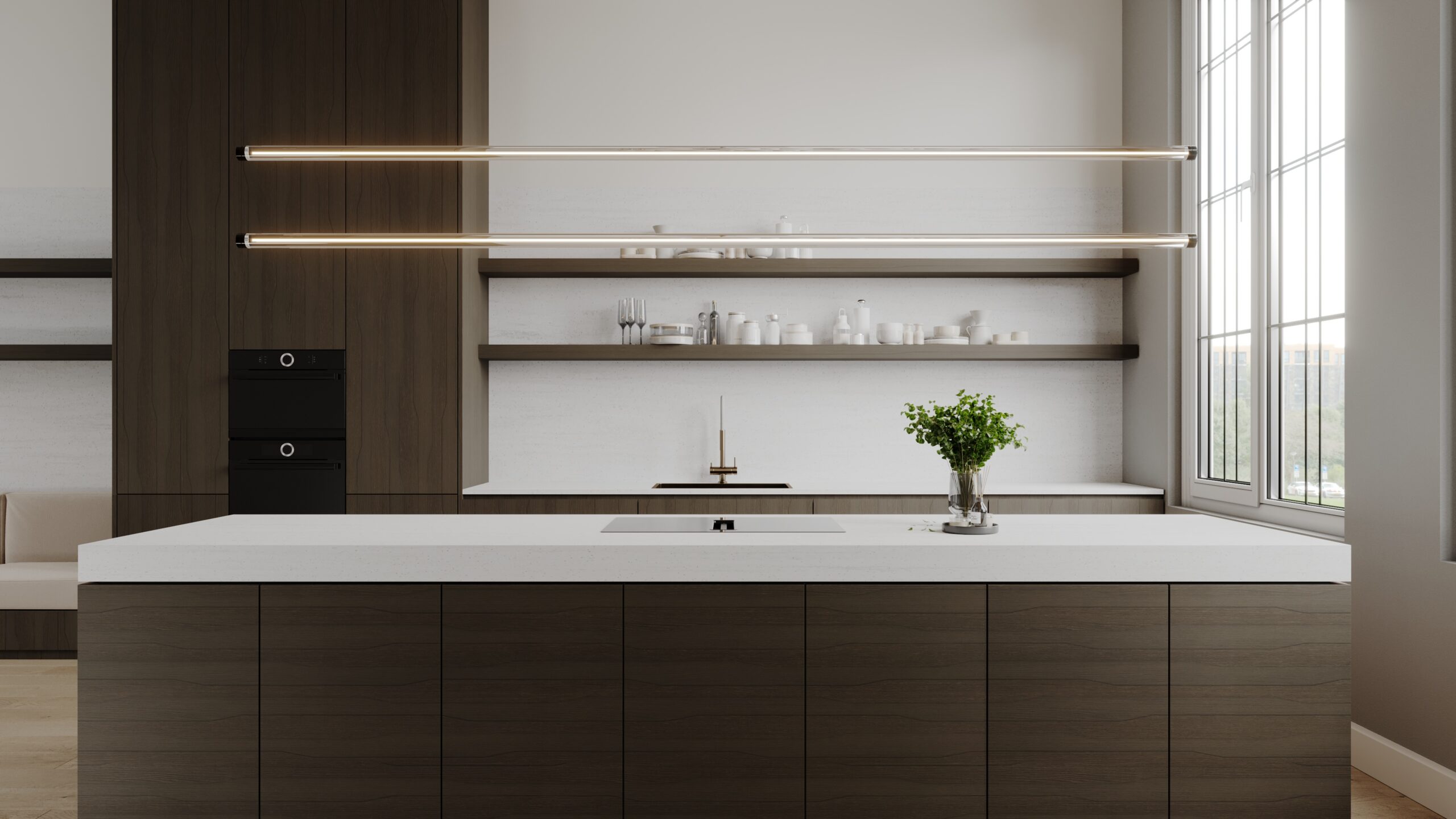Het donkerbruine eikenhout decor S218 Doga van Cleaf toont een dynamisch lijnenspel met brede en smallere stroken. Deze zorgen voor een optische dieptewerking. Textuur Doga vindt zijn inspiratie in de duigen die de romp van een houten vat vormen.