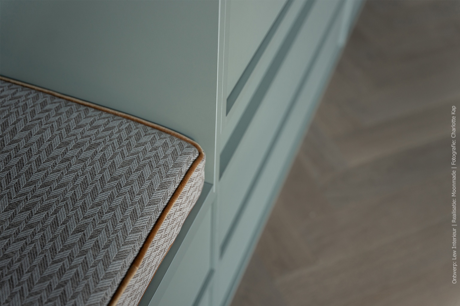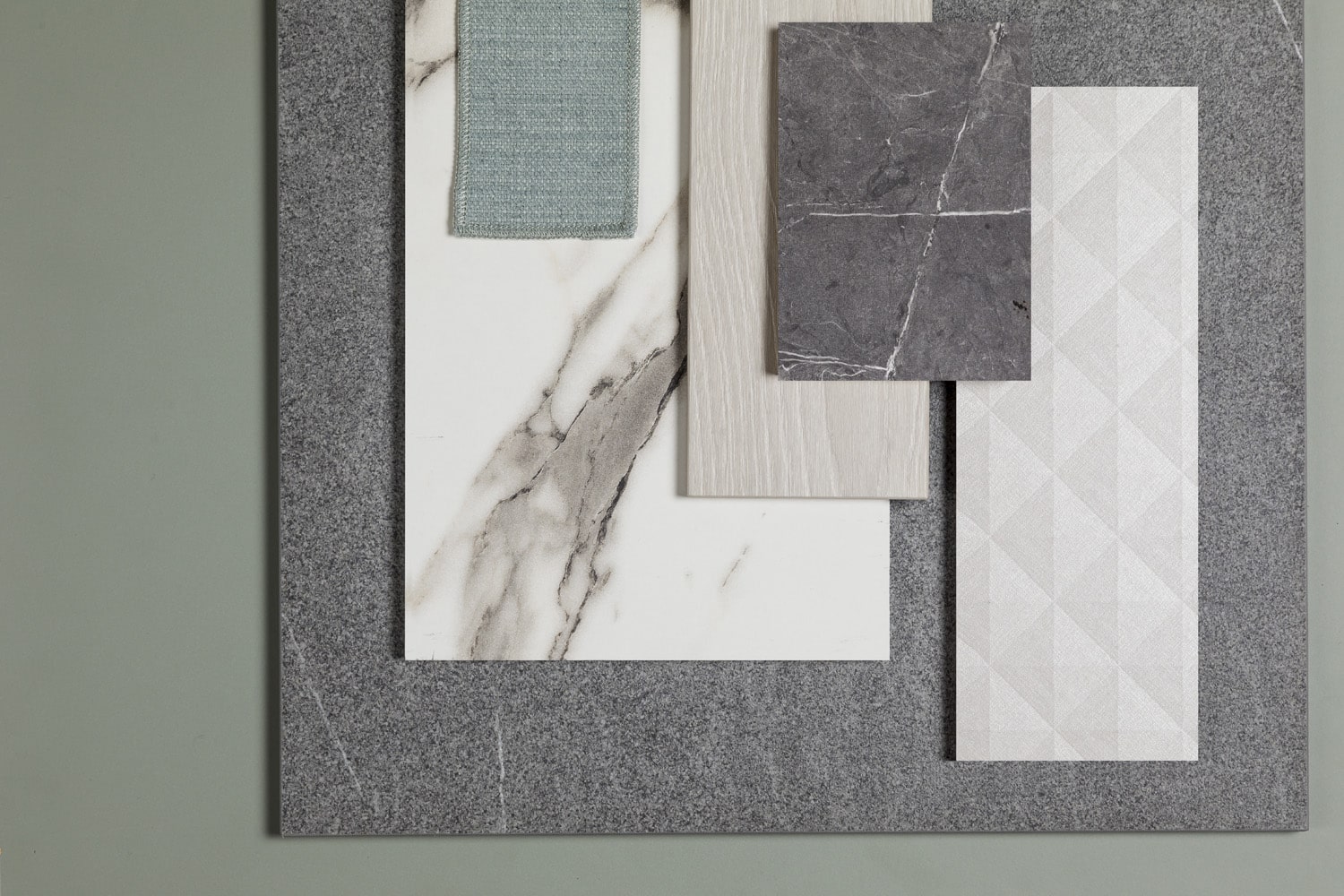 Decor UB25 Ovatta is een zachte grijsgroene tint die goed te combineren is met andere Cleaf texturen, zoals warme houtsoorten, een stoer beton-, elegant marmer- of stijlvol leerdecor.
