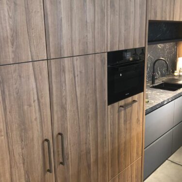 Van de lockerkastjes heeft de architect een inspirerende eyecatcher gemaakt. Voor de lockers, die als speakers zijn uitgevoerd, heeft de architect gebruik gemaakt van de structuur Okobo van Cleaf, geïnspireerd op het hout van de Paulownia boom. Een uitgesproken decor én voelbaar 3D-reliëf. De kleurencombinatie van S158 Okobo, S160 Okobo en LR77 Sablé versterkt het natuurlijke karakter.